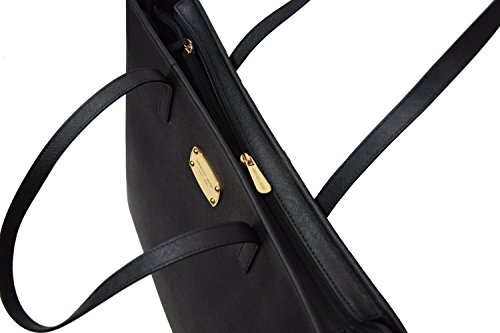 -. Brand : Michael Kors -. Color : Black -. Department : womens -. EAN : 0190049114698 -. Feature : Michael Kors Medium Multifunction Tote in Black PVC. / Gold tone MK Logo plate on front. / 2 Main compartments with a large center padded zip pocket. -. PackageQuantity : 1 -. ProductGroup : Shoes -. ProductTypeName : HANDBAG -. Title : Michael Kors Medium Jet Set Item Top Zip Multifunction Tote in Black PVC -. UPC : 190049114698