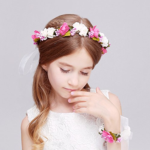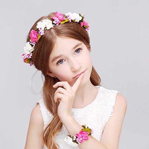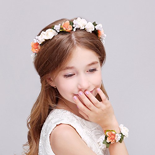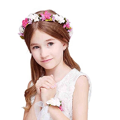 Flower Wreath Headband Crown Floral Wrist Band Set Garland Halo for Wedding Festivals