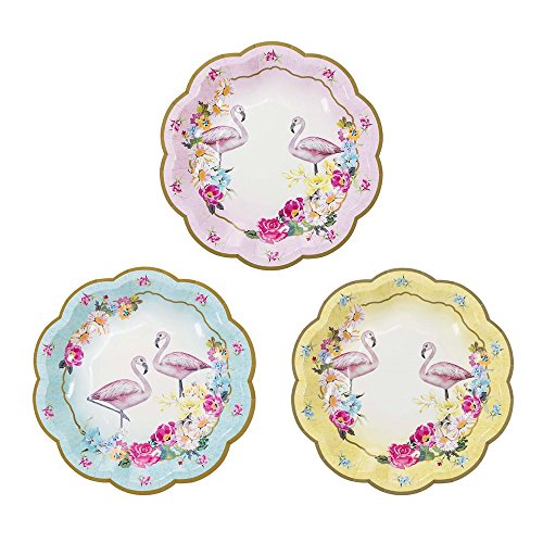 Talking Tables Truly Flamingo Floral Flamingo Paper Plates, 12 count, 7 inch in 3 Designs for a Birthday or Flamingo Party, Blue/Pink/Yellow