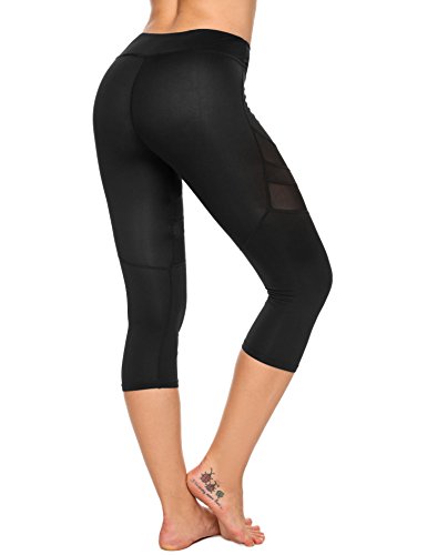 요가복 Ekouaer 요가 레깅스 요가 팬츠 레이디스 팬츠 흡한 속건 요가 웨어 일체형 레깅스 휘트니스 요가 런닝 트레이닝 짐 홈 웨어 등 적합 (L)