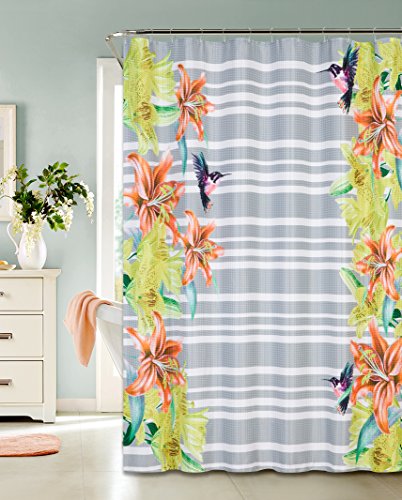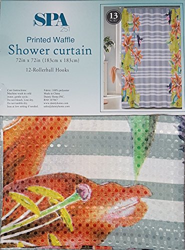 Dainty Home 13HUMPWSCMU 12 Hooks Hummingbird Waffle Weave Shower Curtain Set
