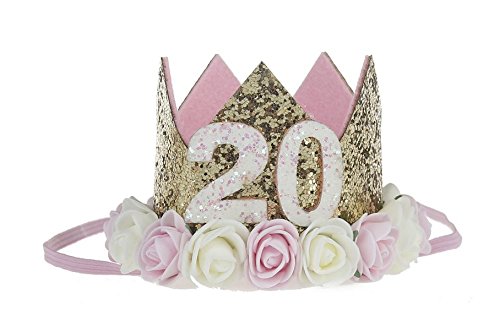 2th 20th 30th Birthday Crown Golden Adult / Baby - Derhom Rose Flower Birthday Headband / Hair Accessories for Birthday Party (20th)