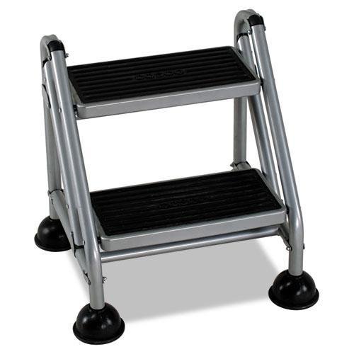 -. Title : Bridgeport Rolling Commercial Step Stool, 2-Step, 19 7/10 Spread, Platinum/Black (11824GGB1)