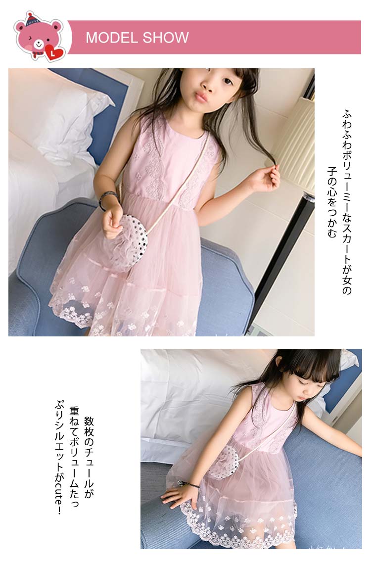 | ふわふわボリューミーなスカートが女の子の心をつかむ数枚のチュールが重ねてボリュームたっぷりシルエットがcute!ウェストから肩まで斜めのレースをあしらい、表情豊かに◎スカラップ裾が女の子可愛らしさをより一層引き立ててくれます。通学通園は勿論、パーティーや結婚式などフォーマルシーンにもお勧め | |