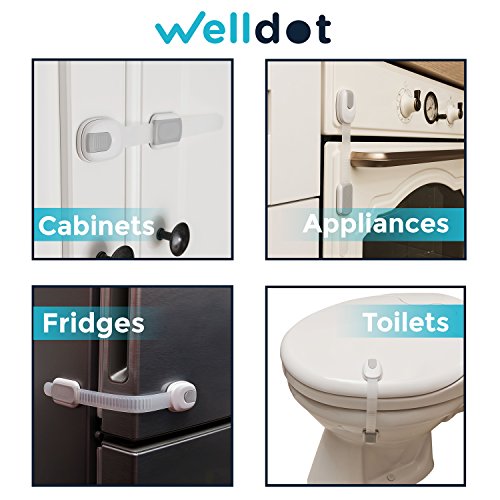 CHILD SAFETY LOCKS THAT PROTECT YOUR BABY: Keep your kid away from choking hazards, chemicals, sharp objects and other dangers that he can come across while searching unsupervised in cabinets or drawers. Welldot's baby proofing latches make your house a care free environment for your tot. They can also be used as: fridge locks, oven locks, toilet locks and appliances locks.