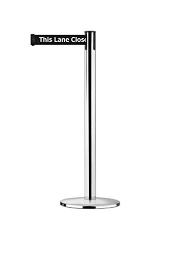 Tensabarrier 889U-1P-1P-STD-NO-BDX-C Polished Chrome Post, 2" Wide, 7' 6" Length "Blk This LANE CLOSED" Belt, 90" Length, Steel