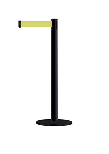 Tensabarrier 889U-33-33-STD-NO-F5X-C Black Post, 2" Wide, 7' 6" Length "Florescent Yellow" Belt, 90" Length, Steel