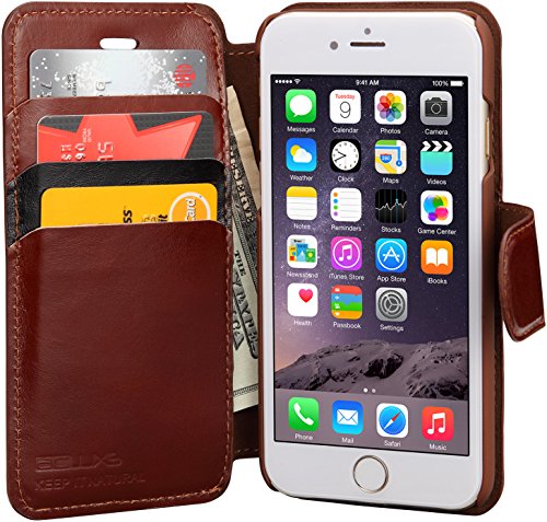 iPhone 6/6s Leather Case, Acluxs Genuine Cow Leather Wallet Case for Apple Smartphone iPhone 6 4.7" Leather Cover Leather Cover Wearable Snugly Folio Stand Style 100% Handmade Ultra Slim (Brown)