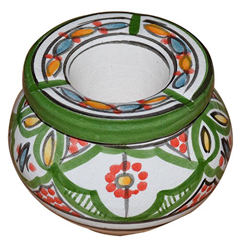 -. Binding : Automotive -. Brand : Ceramic Ashtrays -. Color : Green -. Feature : Small :3.5 inches W x 3.5 inches H / Protect your furniture from cigarette ashes with this exquisite ceramic ashtray / This is an authentic, handcrafted Moroccan Ashtray / Efficient in reducing smell of smoke with no mess that comes after / Top part removable to throw away cigarettes and fits back easy -. Label : treasuresofmorocco.com -. Manufacturer : treasuresofmorocco.com -. PackageQuantity : 1 -. ProductGroup : Home -. ProductTypeName : AUTO_ACCESSORY -. Publisher : treasuresofmorocco.com -. Studio : treasuresofmorocco.com -. Title : Moroccan Handmade Ceramic Ashtrays Smokeless Cigar Exquisite design with Vivid Colors