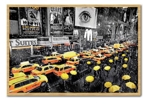 -. Title : New York Taxis And Umbrellas Poster Magnetic Notice Board Beech Framed - 96.5 x 66 cms (Approx 38 x 26 inches)