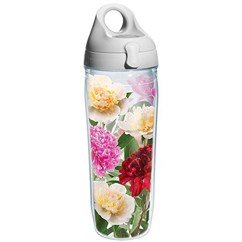 Tervis Peonies from Heaven Wrap Water Bottle with Grey Lid, 24-Ounce, Garden Party