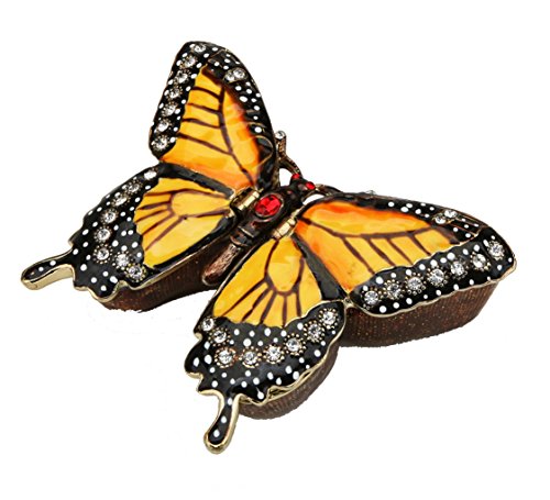 Feature : Hand set with more than 40 sparkling Swarovski Crystals! Measures 3.25 inches wide by 2.5 inches tall. / This treasure has been meticulously hand painted by skilled artisans to bring a faithful reproduction of a an exquisite Monarch Butterfly. / Arrives in a padded presentation box with a manufacturer's certificate of authenticity. / This figurine is really a "box" with two, hinged, secret compartments for holding trinkets, pills or keepsakes! Each wing lifts up to reveal a compartment. / Also, this collection has been issued in limited editions and each piece will become a valuable keepsake to its owner, for years to come.