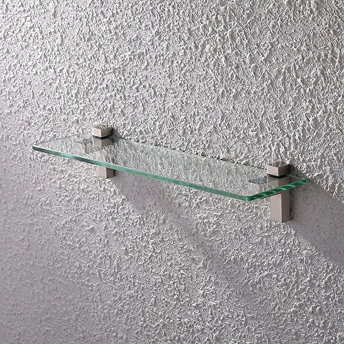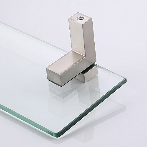 KES Tempered Glass Shelf, Bathroom Shelf with 19.6 Inch Rectangular Glass (8mm Thick) Wall Mount, Brushed Nickel, BGS3201-2