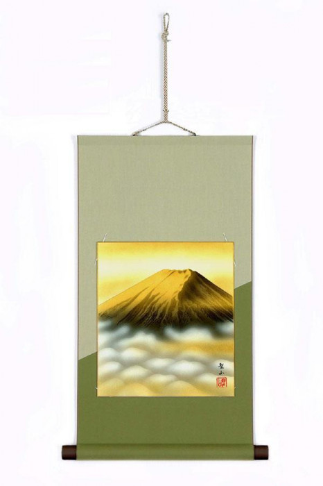 吉事の兆しとして喜ばれる金富士の絵柄をご用意。富士は出世・繁栄を招き、金富士は金運を高めるとされていて、よりよい縁起物になります。長さが57cmという手ごろな大きさが飾る場所を選びません。お手持ちの色紙等と入れ替えも出来ます。