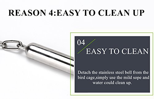 - EASY TO CLEAN - Detach the stainless steel bird bell toys from the cage,simply use mild soap and water to clean up.