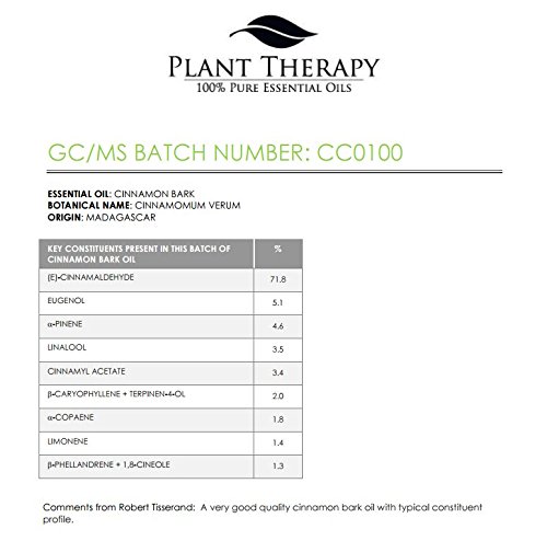 - Feature : Botanical Name: Cinnamomun verum / 100% Certified Pure Therapeutic Grade Essential Oil- no fillers, additives, bases or carriers added. / Packaged in dark amber glass bottle with euro style dropper cap / Have Questions? Message one of our Certified Aromatherapist through Amazon messages / At Plant Therapy we also have some other selections you may be interested in. Includes: Basil, Bergamot, Cajeput, Carrot, Cedarwood, Chamomile, Cinnamon, Citronella, Clary Sage, Clove, Cypress, Eucalyptus, Fir, Frankincense, Garlic, Germanium, Ginger, Grapefruit, Helichrysum, Lavender, Lemon, Lime, Mandarin, Marjoram, Myrrh, Neroli, Naiouli, Nutmeg, Orange, Oregano, Patchouli, Peppermint, Pine, Rosemary, Spearmint, Tangerine, Tea Tree, Thyme, Vetiver, Vanilla, Wintergreen, Ylang Ylang.