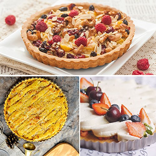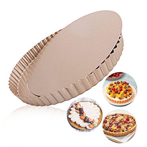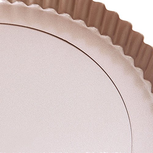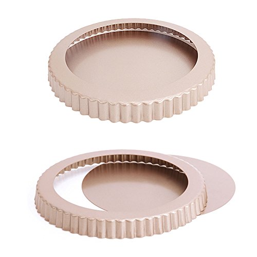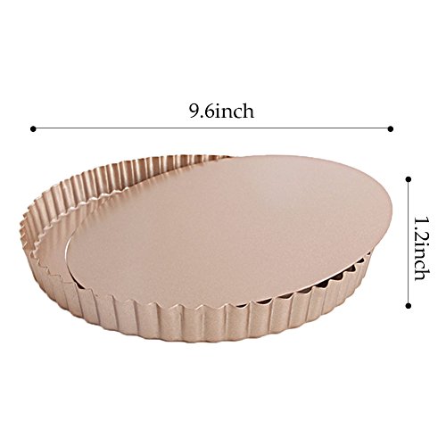 Tart Pan Round Nonstick 9.5 inch Removable Loose Bottom Quiche Pie Pan Gold by LUFEIYA