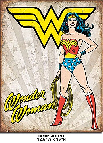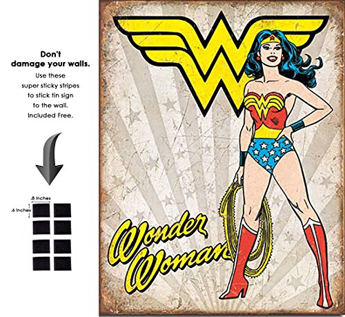 Shop72 Tin Sign DC Comic Series Wonder Woman Super Hero Metal Tin Sign Retro Vintage - With Sticky Stripes . No Damage to Walls