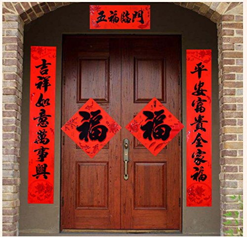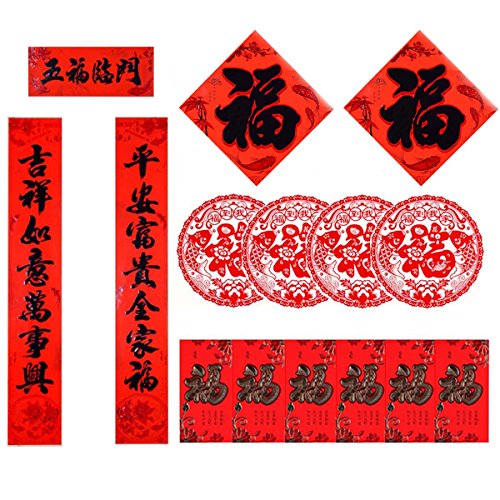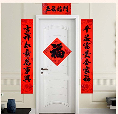 What included – This Couplet set has many pieces. A pair of couplets with random poems. Big Fu, red paper packets, Window Flower Sticker.