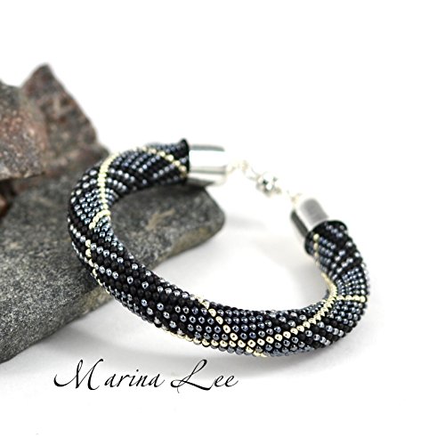 -. Title : 1 Bangle Metallic Hematite Bracelet - Bead Crochet Bracelet Beaded Bracelet Minimalist Bracelet Beadwork Unisex Bracelet Jewelry Modern
