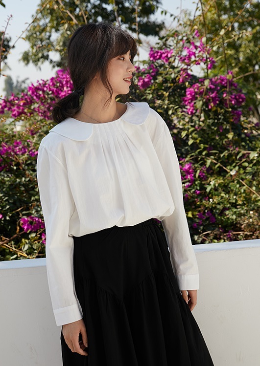 フロントタックと丸襟でガーリーな雰囲気をまとうブラウスです◎