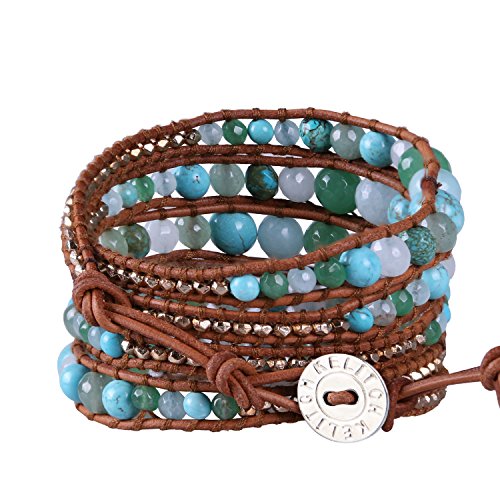 -. Feature : Imported, handmade item, 5 wraps / Personalised & unique designs, completely handcrafted by experienced craftsmen, each bead is hand sewn to the leather / Silver plated KELITCH button with 3 adjustable closures, length: 34-36 inches (appr.86-91cm) / Statement: each bead color and pattern may not perfectly same due to it is natural stone so that can not control / See other items, just click on the brand name "Kelitch Jewelry" which is above the product