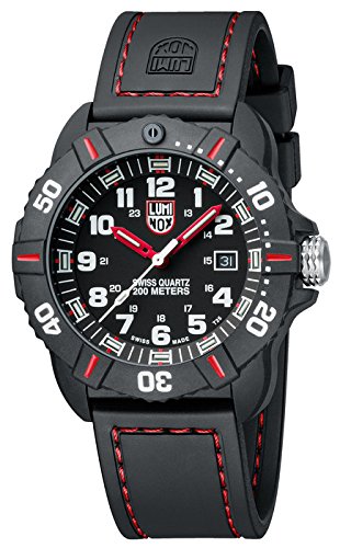 -. Feature : Swiss Made / Luminox self-powered illumination / Multi-jewel Swiss quartz movement / Tempered scratch resistant mineral crystal / Black rubber (NBR) signature strap with contrast red stitching