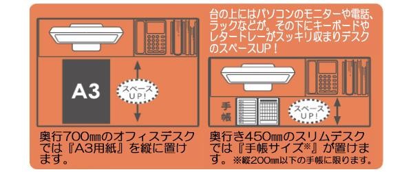 | 机上台を使えば、有効スペースがアップ!! |