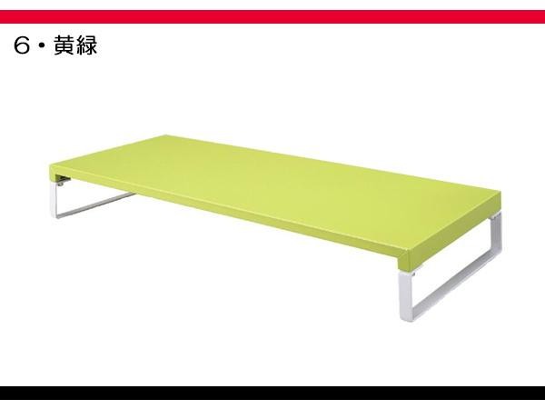 カラフルな4色展開のロータイプの机上台です。下段はキーボードや大型ノートPCの収納にご使用いただけます。 |