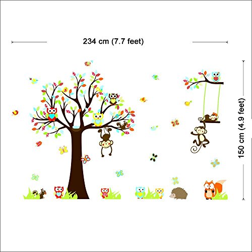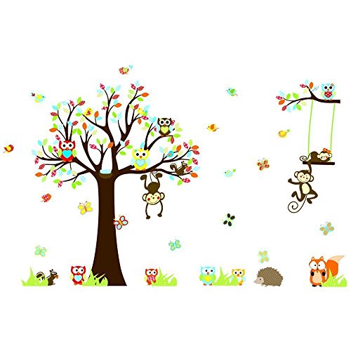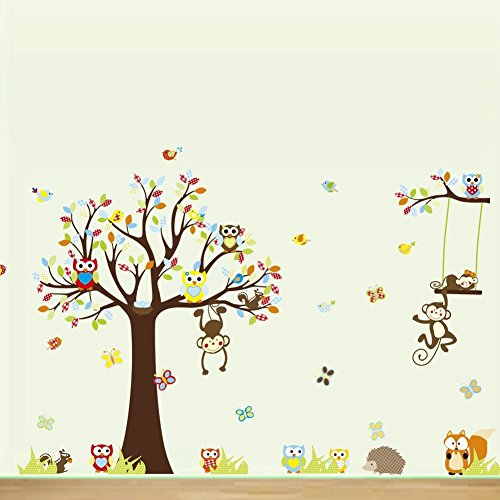 Large Jungle Animals Owls Tree Removable Wall Stickers Wall Decor Home Decor Wall Art Kids Room Bedroom Decor Living Room Decor Sofa TV Background DIY Art Decals