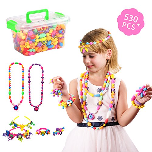 ❤ What's in the Box - 530 PCS Pop Beads, 2 pcs hair band and a booklet. This unique snap together beads comes with various shapes, sizes, designs, colors.Color of beads will be shipped at random.RECOMMENDED AGE: 3 YEARS AND UP.