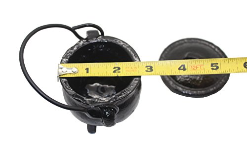 Crafted of finely wrought cast iron, this cauldron is a wonderful piece for decorating the home or altar. Standing 3 inches high and 2.75 inch wide and resting on three squat, 0.75 inch legs. It measures approximately 2 inch deep internally, with an internal diameter of approximately 2.25 inch. Coming complete with a heavy, cast iron lid and a carrying handle, it is perfect as an incense burner, for filling with potpourri, decorating your desk or shelves, using on your altar, or whatever purpose you can imagine for this delightful little cauldron.