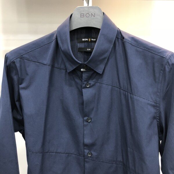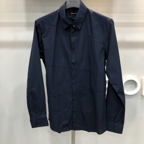 본 16F/W 네이비 앞판 사선 절개 셔츠네이비 기본 셔츠에 앞판의 포인트로 조금더클래식하고 멋스럽게 입을수 있는 아이템입니다원단이 부드럽습니다.