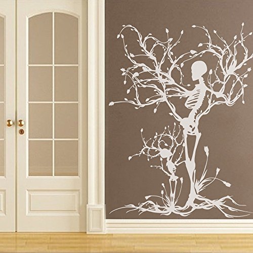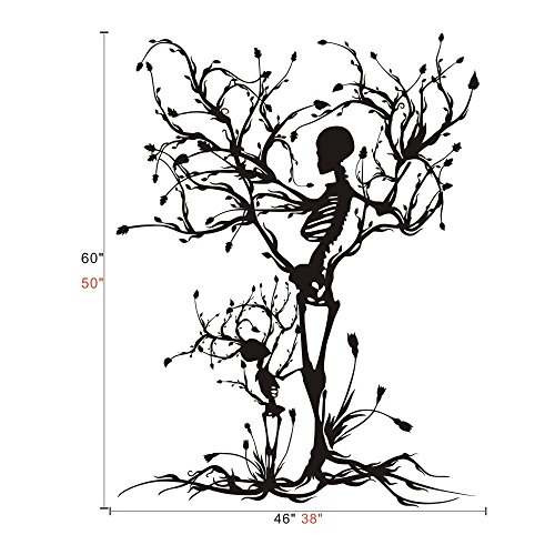 MairGwall Gothic Wall Decal Halloween Decor Skeleton Art Sticker Tree Wall Art For Living Room (60"h x46"w,Black)