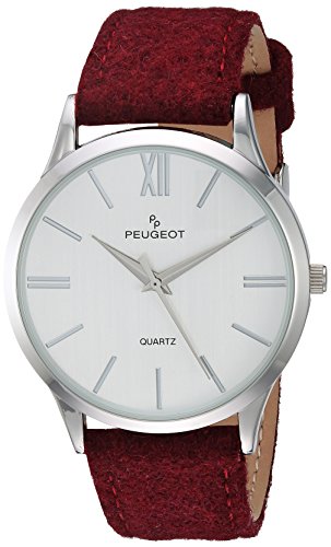 Peugeot 'Slim Case Burgandy' Quartz Metal and Leather Casual Watch, Color:Purple (Model: 2058WN)