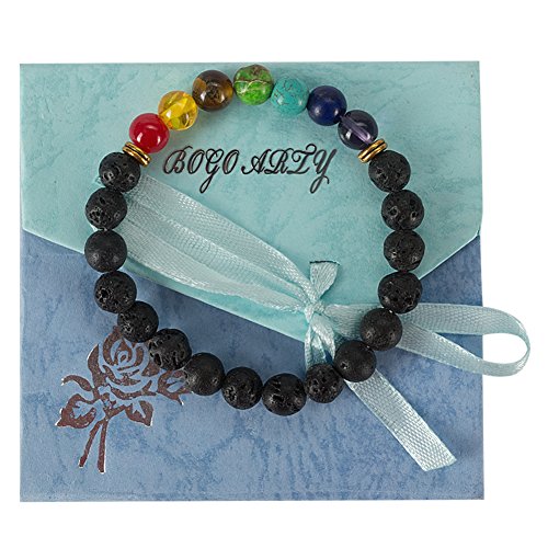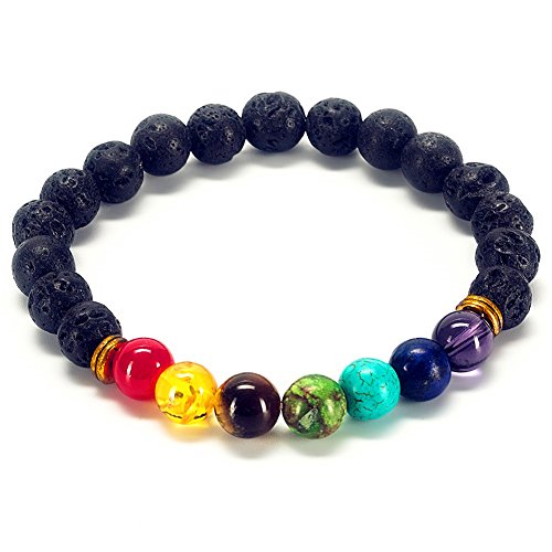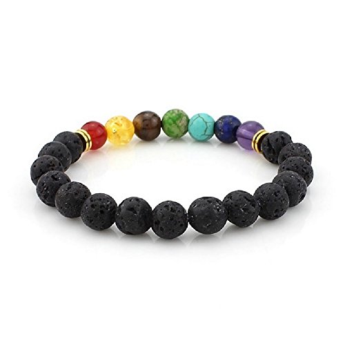 Bead Size: 8mm; Bracelet Length: 8 inch (20cm). New chakra bracelet made with real lava stones, Stretchable and Adjustable to fit most wrist sizes.