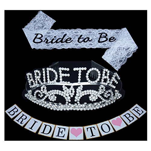 Bride to be Decoration Set for Bachelorette Party Supply( Satin Sash,Glitter Tiara and Wedding Banner)