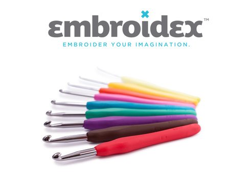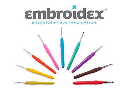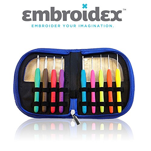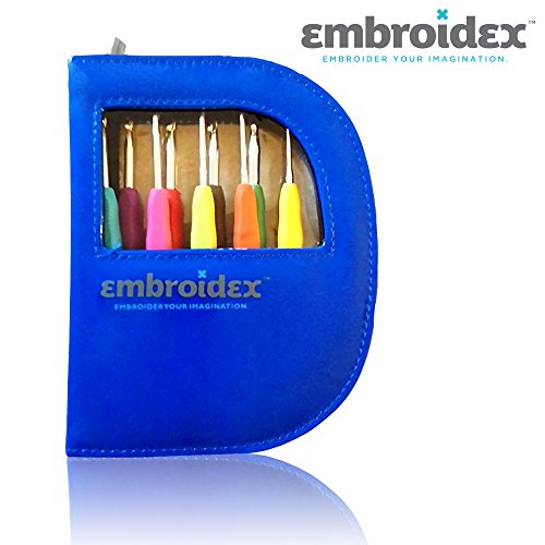 Embroidex 9 Pc Ergonomic Crochet Hooks Needles - Color Coded - Non Slip Cushioned Handles In Beautiful Case