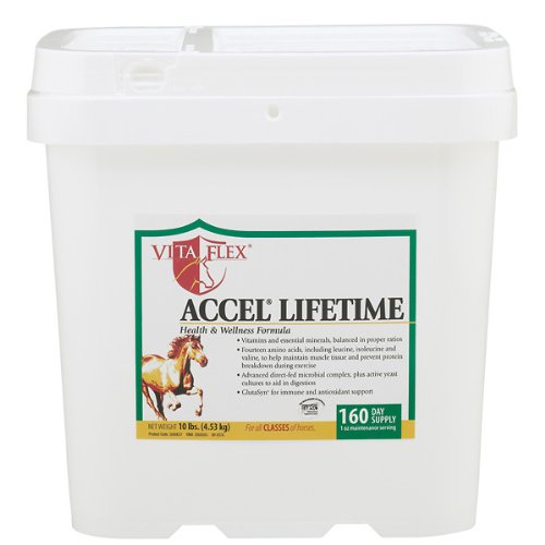 - Vita Flex Accel Lifetime for horses is compatible with virtually any feeding program