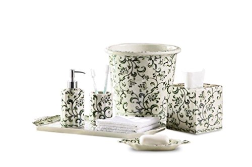 Green Scroll Vine Pattern Bathroom Set of 6