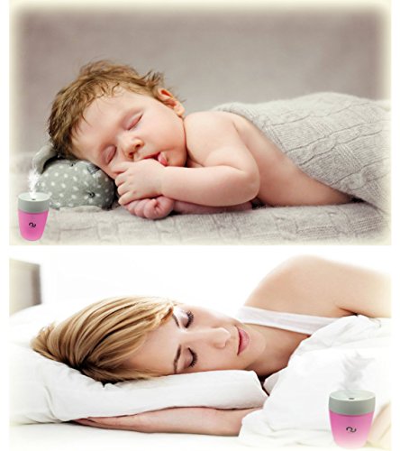 Cool Mist Humidifier, USB mini Portable desk Humidifier,Car humidifier Travel with Night Light, Automatic Shut-off, Perfect for Home, Office, Car ,Travel (Pink)