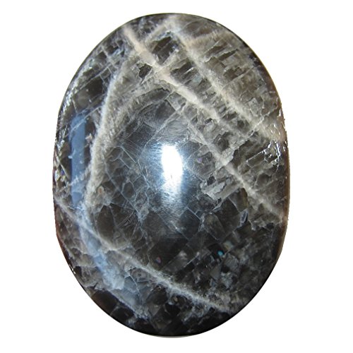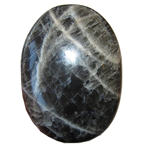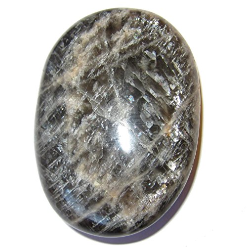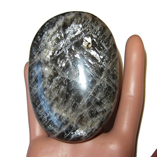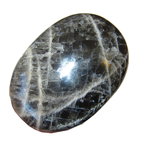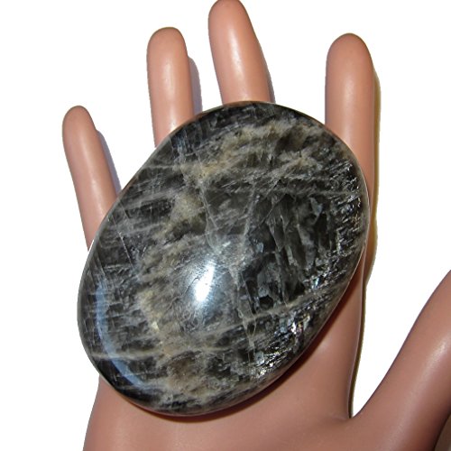 Moonstone Polished Stone Black 52 Rainbow & Sheen Palm Crystal Moon Space Galaxy Energy XL 3.3"