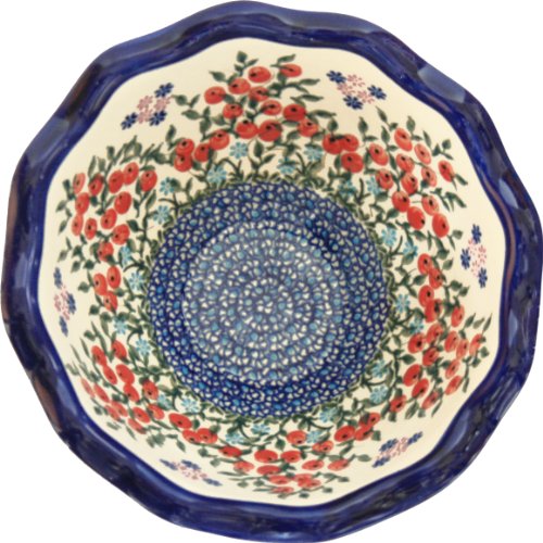 Polish Pottery Ceramika Boleslawiec 0413/282 Royal Blue Patterns 5-3/4-Cup Fala Bowl, Small, Red Berries and Daisies
