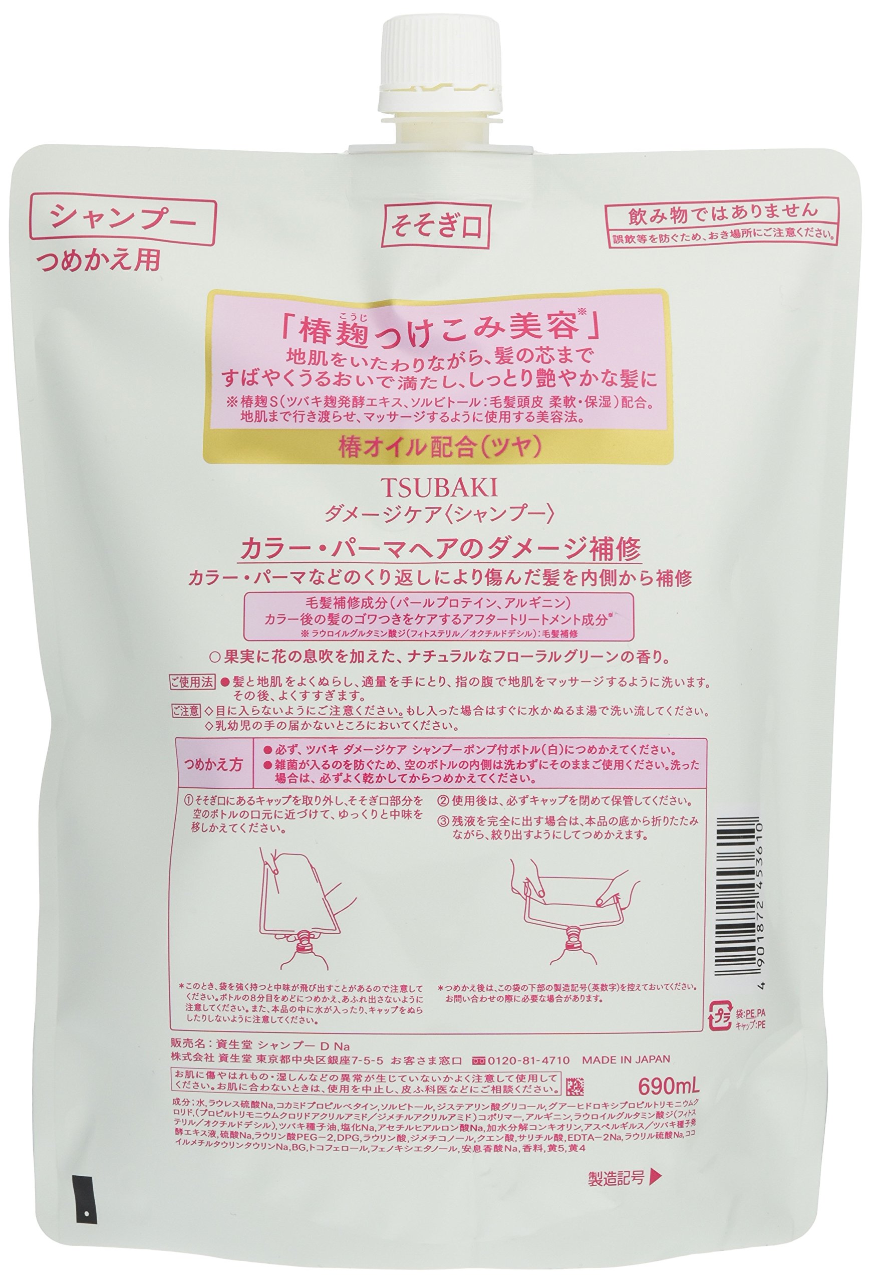 Camellia oil (gloss), camellia S (camellia koji fermented extract, sorbitol: hair scalp, softening / moisturizing) formulation, hair repair ingredients (pearl protein, arginine) formulation, after-treatment to care for hair after color