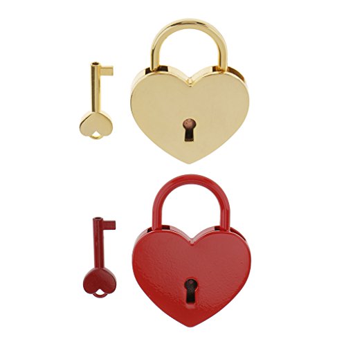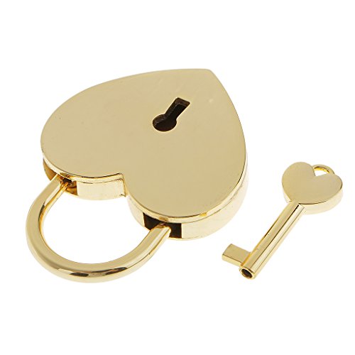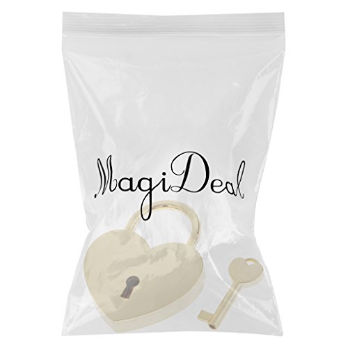 -. Title : MagiDeal Retro Heart Shaped Padlock with Key Suitcase Lock Valentine's Day Gift Golden L