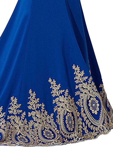 Material: Stretch Chiffon, Sheer Bodice with Gold Lace Appliques