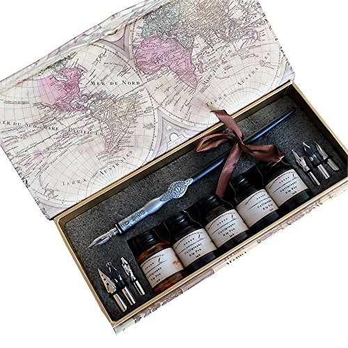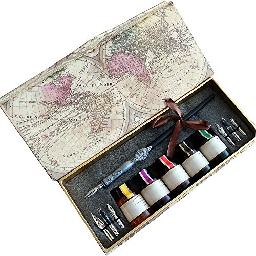 -. Feature : Calligraphy tool english practising pen / Handmade with finely elected feather / Metal nib type shipped in random / Pen body metal carving craftment / Good Quality Gift Box