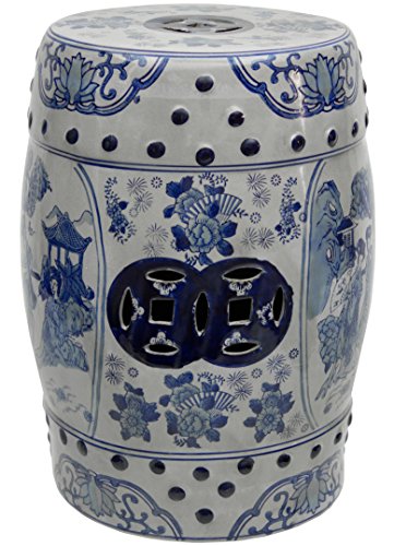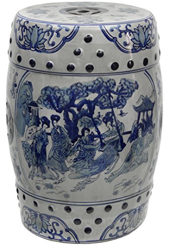 Oriental Furniture 18" Ladies Blue & White Porcelain Garden Stool