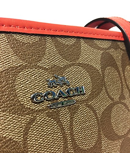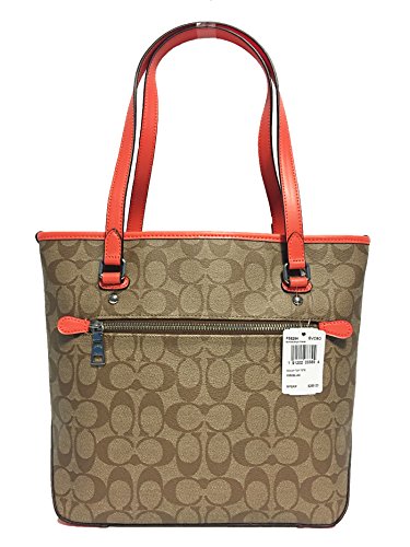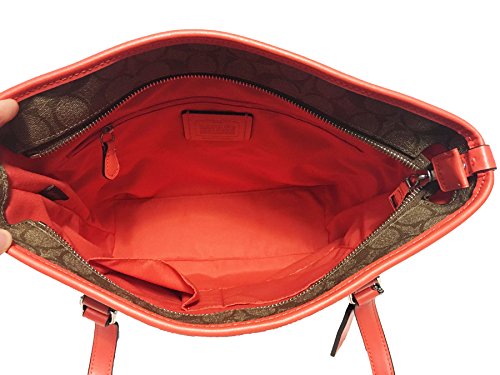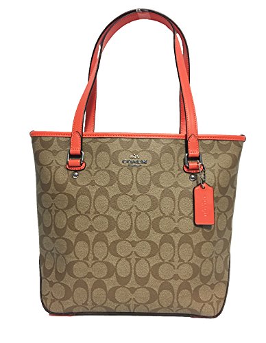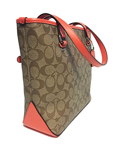 Coach Signature Zip Top Tote (Khaki/Bright Orange)