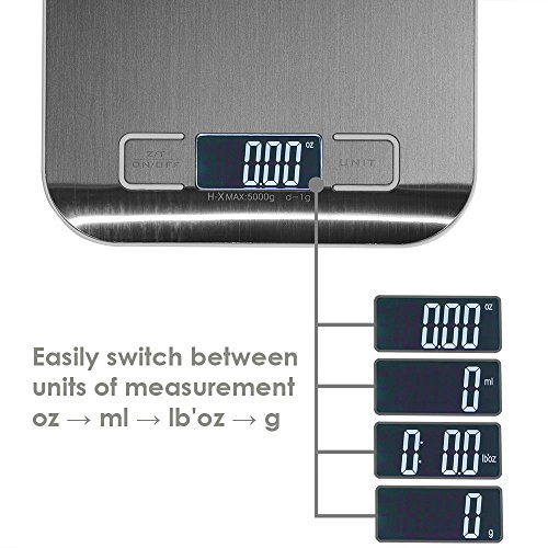 - Unit button gives you multifunctional weighing options such as gram, ounce, milliliter, and pound ounce (g, oz., ml, lb-oz), so you can use the mode that works best for your recipe.